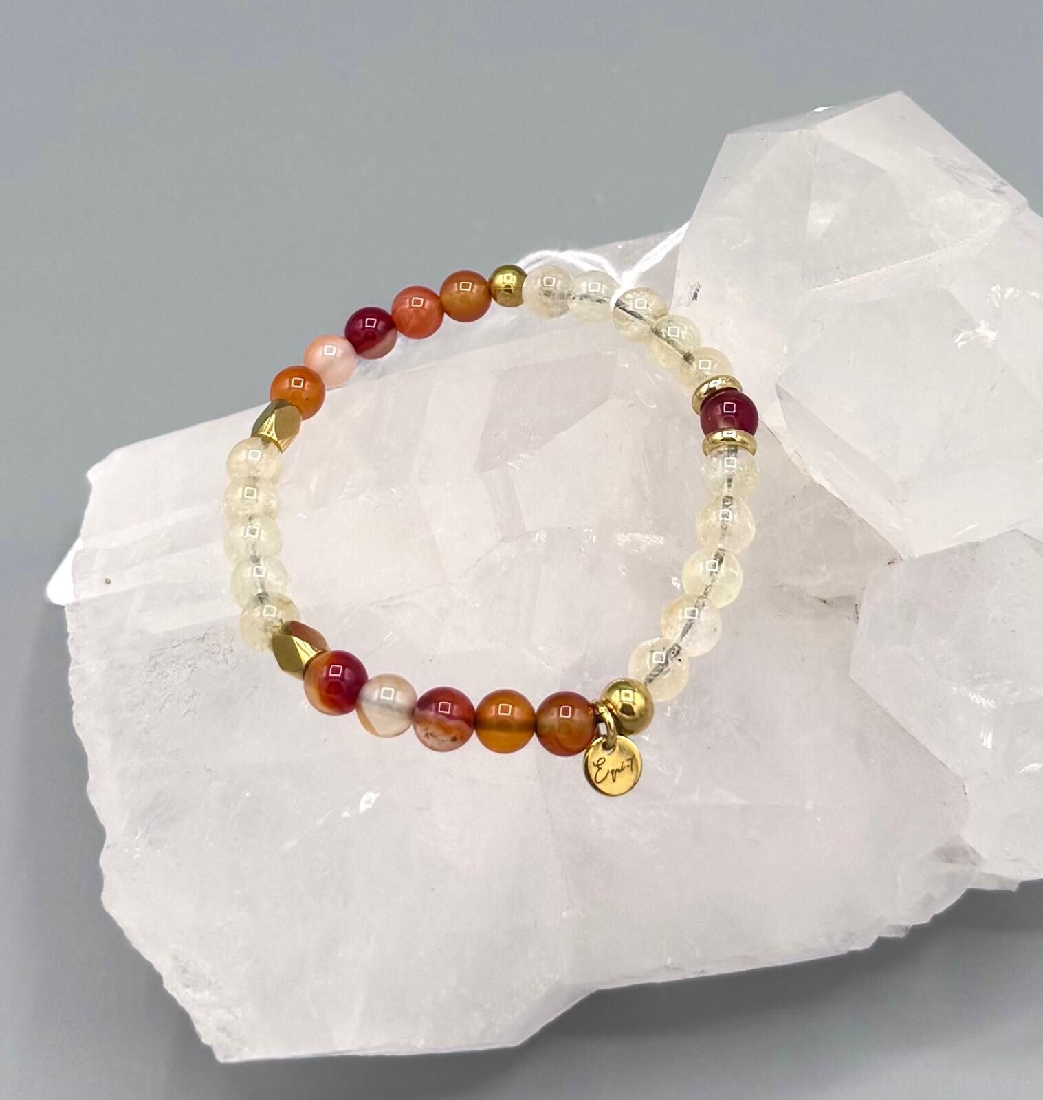 Les bijoux de la collection "bien-être" sont réalisés en acier inoxydable avec pierres naturelles certifiées en laboratoire.